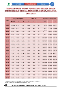 Petunjuk: L = Lelaki, P = Perempuan, KPTB = Kadar Penyertaan Tenaga Buruh