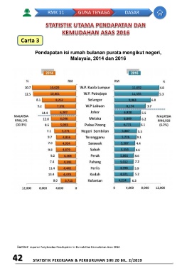 RMK 11 GUNA TENAGA DASAR Carta 3 Pendapatan isi rumah bulanan purata mengikut negeri, Malaysia, 2014 dan 2016 Sumber: Laporan Penyiasatan Pendapatan Isi Rumah Dan Kemudahan Asas 2016